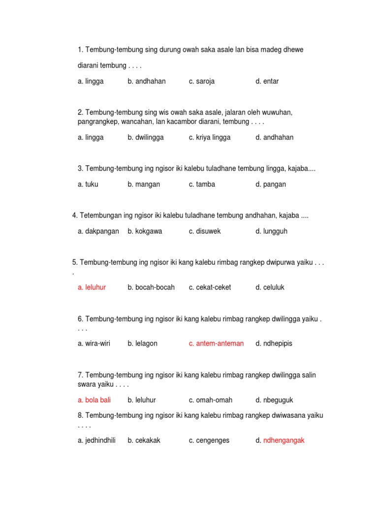 Soal Bahasa Jawa Kls 8 Tembung Rangkep Brainly Co Id