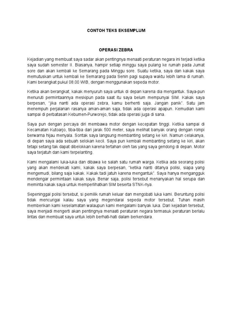 Teks eksemplum berikut untuk soal nomor 1-4 Hari Minggu aku dan kakak sepakat pergi ke Bandung. Teks eksemplum ini umumnya diawali dengan adanya pengenalan diri si tokoh seperti apa wataknya bagai mana kehidupan kesehariannya status dan sebagainya keterangan mengenai dirinya.